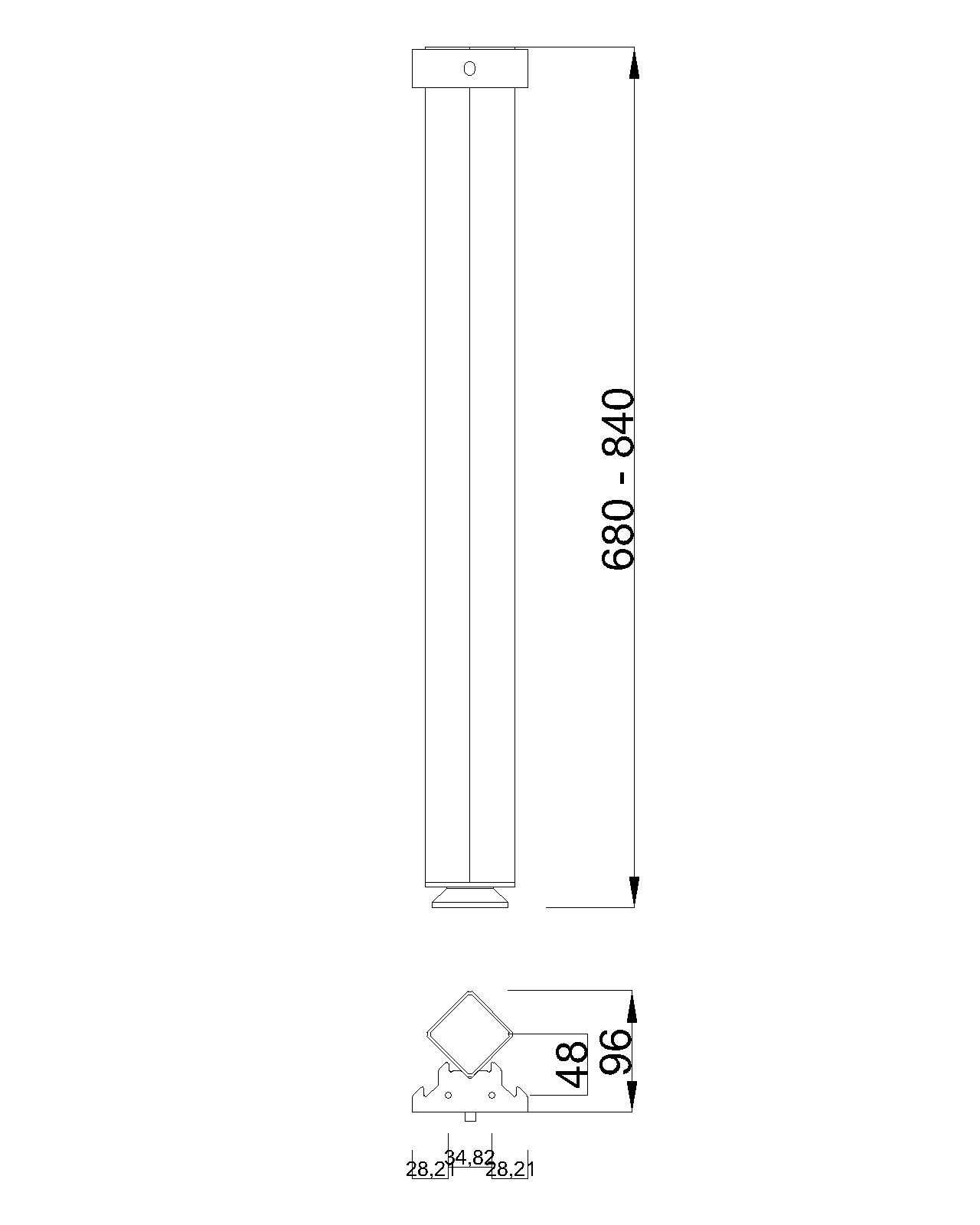 Rozměry: 50x50x680–840H