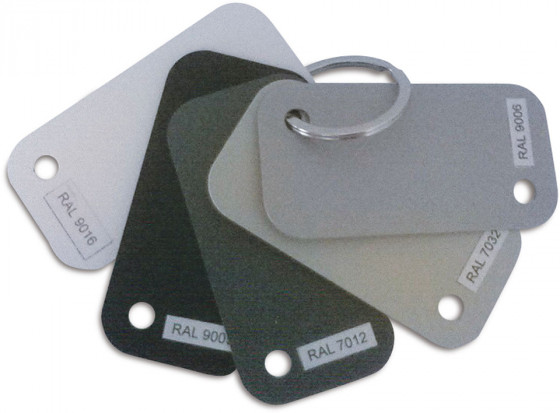 MilaDesign - vzorkovnik povrchů RAL9006, RAL7012, RAL9005, RAL7032, RAL9016.