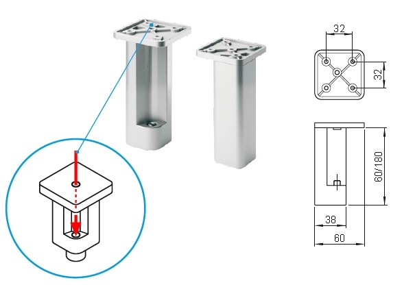 Nábytková noha 727R výška 120mm šedá RAL9006