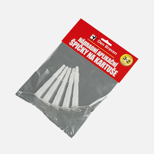 Pro opakované použití tmelů a lepidel v kartuších. Při zatvrdnutí tmelu nebo lepidla ve špičce ji jednoduše nahradíte novou – náhradní. Umožňuje snadné přizpůsobení v případě požadavku na rozdílnou šířku spár. Aplikační špičku lze snadno upravit seříznutím dle požadavku