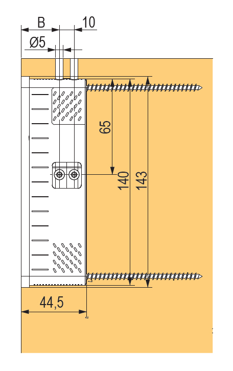 Závěsné rektifikační kování pro zafrézování do hrany korpusu. Minimální tloušťka stěny korpusu je 18mm. Možno použít na horní skříňky i na police se svislými bočnicemi. Nosnost 160kg/pár. Přístup k rektifikačním šroubům možný ze 3 stran - zleva, zprava a shora.
