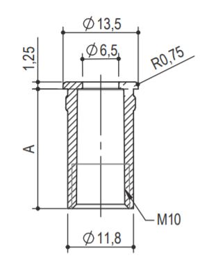 Krytka s vnitřním závitem M10, výška A = 29,5 mm, barva nikl