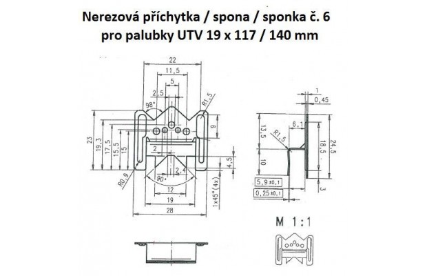 Nerezová sponka č. 6 pro palubky UTV/PanelSystém 19mm, Spotřeba 2ks / bm profilu.