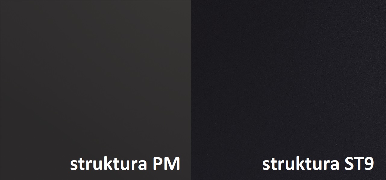 • MDF nosič, z jedné strany lakovaný povrch ve struktuře PM, z druhé strany laminovaný povrch ve stejné barvě a struktuře ST9 (Smoothtouch Matt)