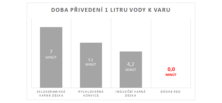Inovativní technologie, které se skrývají v systému GROHE RED, zařídí, že už nikdy nebudete muset čekat na šálek lahodného čaje. Anebo na večeři. A méně čekání znamená taktéž menší spotřebu elektrické energie.