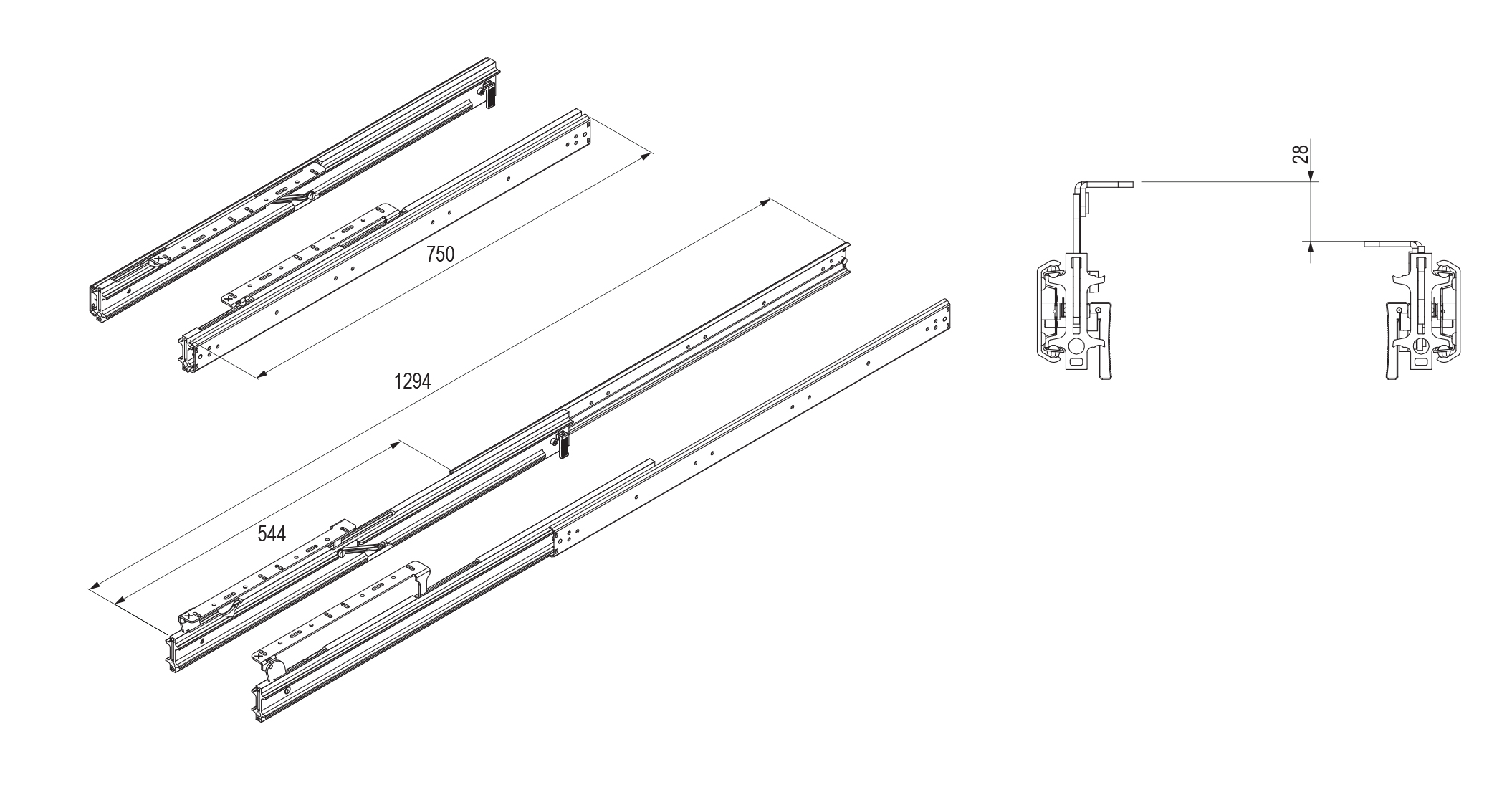 délka vysunutí: 2x 544 mm