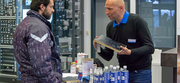 To ale nebylo vše, firmy z Hradecka se jako první seznámily s absolutní novinkou v našem sortimentu a odnesly si vzorky. StrongClean E25 a StrongClean ECO E57 fungují na 100 %, což produktový specialista Ivan Jablonický demonstroval na deskách v matu i lesku.