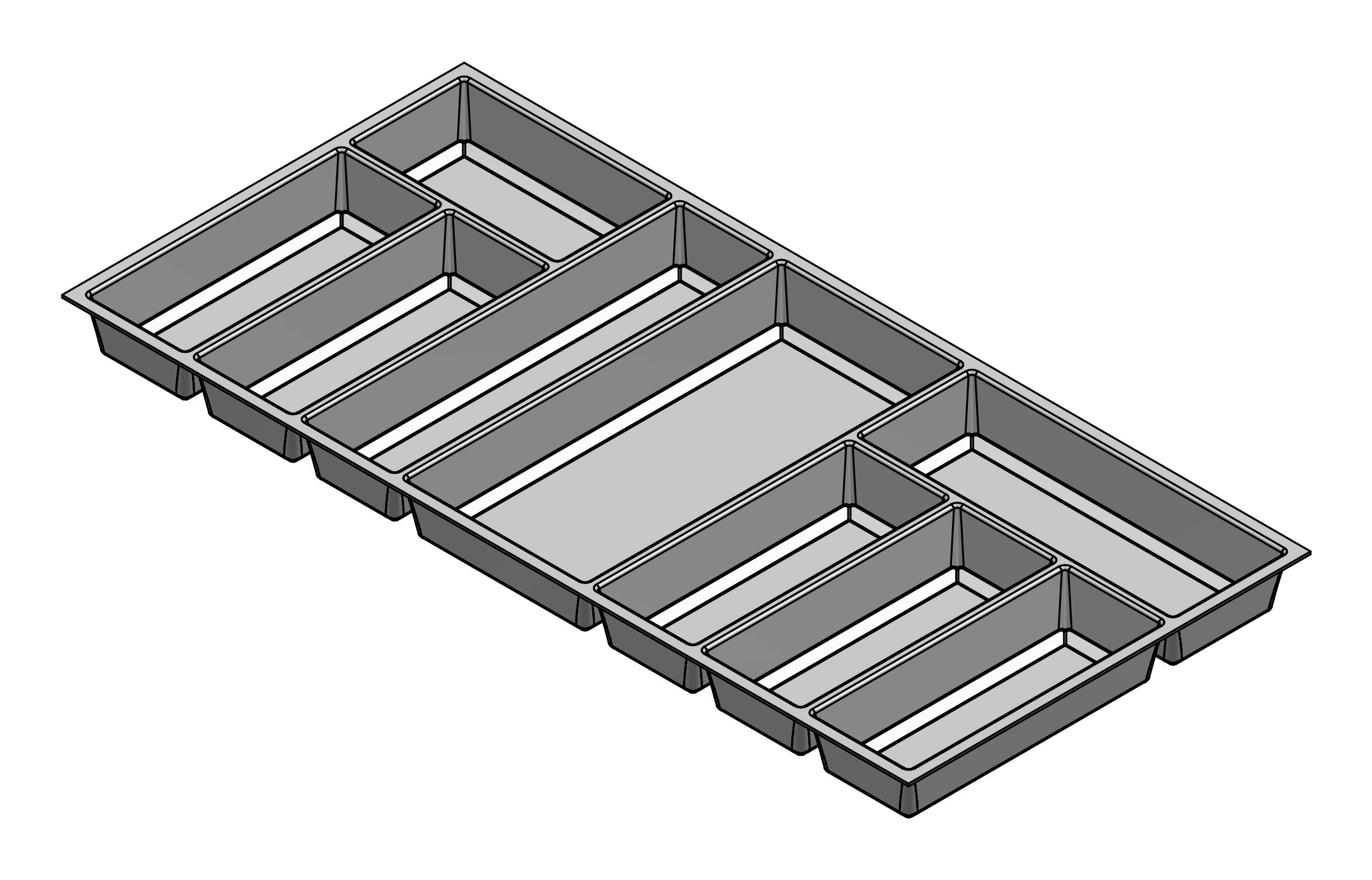 Příborník Kristall softTouch 90 (822 x 424 mm) v provedení Kristal soft Touch v barvě černé. Rozměry odpovádají rozměrům Legrabox v hloubce 450mm pro skříňku 900mm