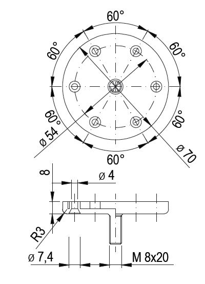 Příchyt noh 761S se šroubem M8