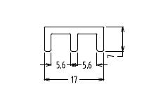 Plastový pojezdový profil pro skleněné dveře, spodní. Délka 2m. Nosnost max. 10kg. Šířka skla max. 5mm. Rozměry: 17x7mm. Barva černá.