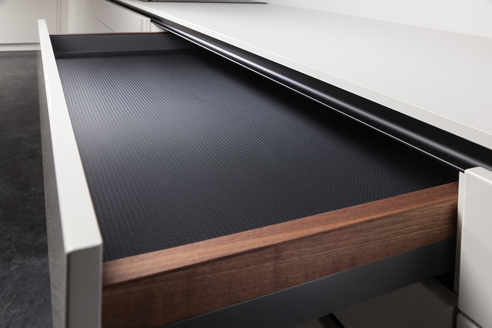 Protiskluzová podložka AGO-Kristal SoftTouch. Materiál - syntetická guma - černá. Formátováno pro zásuvky StrongBox (80cm) Rozměr desky 681 x 474 mm