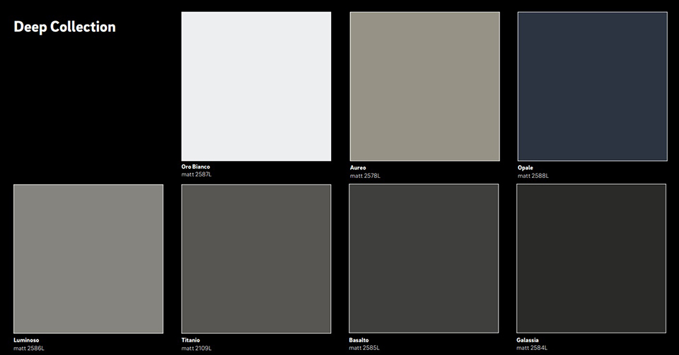 Vzorník Rauvisio Crystal "DEEP" Collection - klapkarta A4. Vzorník obsahuje vzorky o velikosti 80 x 80 mm.