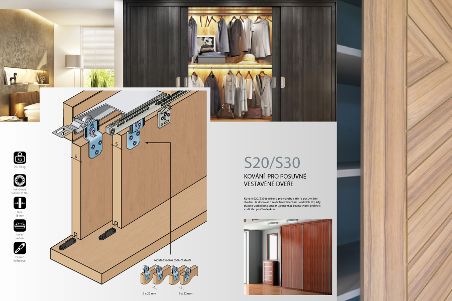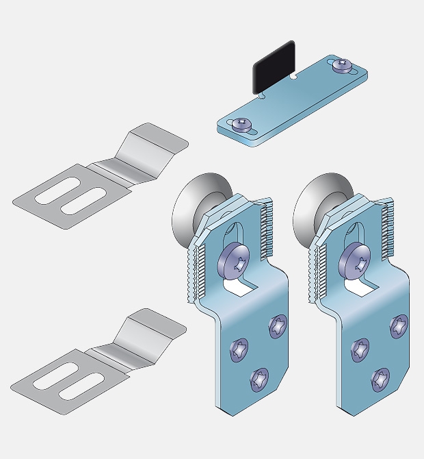Sada kování pro posuvné vložené dveře s horním zavěšením.