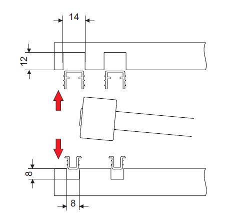Horní vedení pro kování na posuvné hliníkové rámečky viz. související sortiment. Materiál - surový hliník.