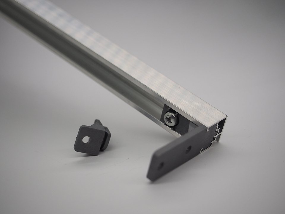 Koncovky pro vymezovací profil korpusu. Obsahuje levou i pravou koncovku a element k přichycení k pracovní (horní) desce.