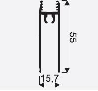Spodní krycí lišta pro úchytové lišty systému Gemini 10 viz. související sortiment. Pro DTD 10mm nebo sklo/zrcadlo. Povrchová úprava - oliva elox. Materiál - hliník.