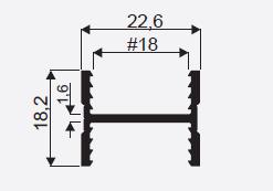 Spojovací profil k systému Maxim pro propojení DTD 18mm a skla/zrcadla šíře 4-4,5 mm. Při použití skla/zrcadla nutno použít těsnění 98037M.