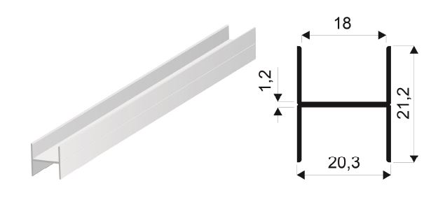 Spojovací H profil pro systém Simple 18 mm, bez možnosti šroubovat.