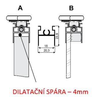 Horní vodorovný profil pro systém Simple/Blue 18 mm (úchytové lišty Era, Rekord). Slouží pro zhotovení rámu, do profilu se instalují horní vozíky. Povrchová úprava - RAL9005 mat.