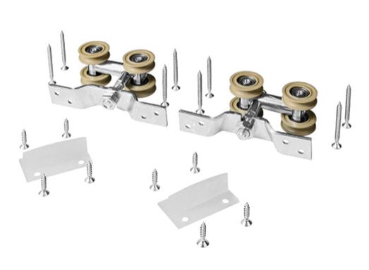 Sada kování pro dřevěné interérové posuvné dveře. Sada obsahuje: 2x horní vozík. Spojovací materál. 2x plastové vodítko.