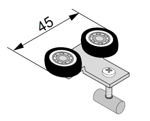 Horní vozík pro úch.lištu Master a Star a horní vedení Comfort. 1 křídlo - 2 vozíky. Pro DTD 10mm/sklo/zrcadlo.