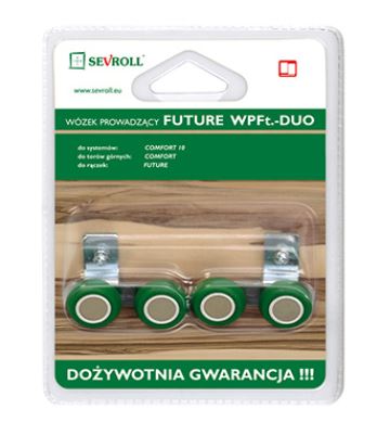 Horní vozík pro úchytovou lištu Future. Sada obsahuje levý a pravý vozík.Horní vedení - Comfort; spodní vedení Doubler nebo Comfort. Pro DTD 10mm.