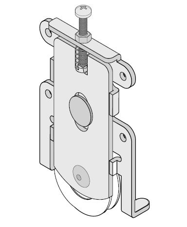 Spodní vozíky pro bezrámový systém Blue 18 mm (úchytové lišty Libra, Era, Fiesta, Focus a Trio), použití bez rámové lišty, frézováno do lamina. 2ks