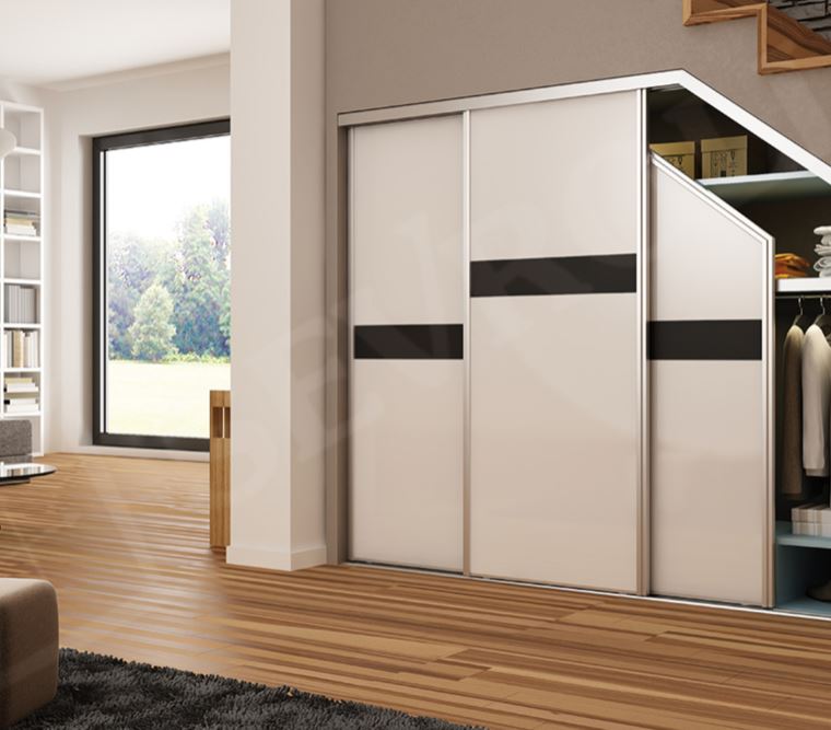Sada kování pro pro jedno šikmé křídlo. Pro DTD 10mm.Skříň musí mít min.3 křídla! Je nutné použít i 3m vodící lištu 98077 , která se upevní na spodní stranu police skříně. Délka lišty musí být min. 2/3 šířky skříně. Sada obsahuje dva vozíky pro pomocnou policovou vodící lištu + spojovací kování. Pouze pro použití s úchytovou lištou Fox.