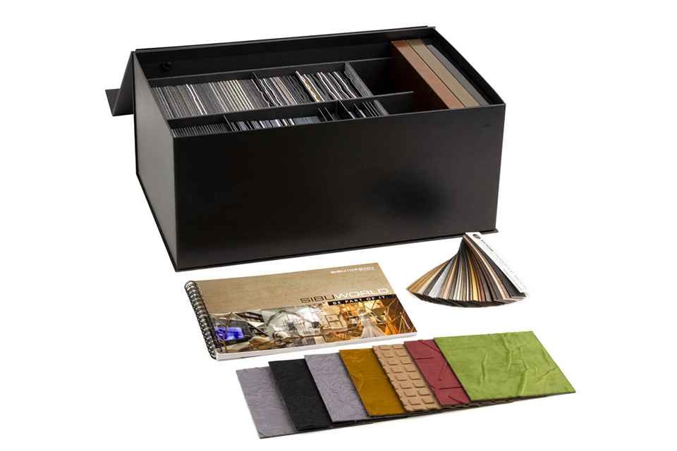 SIBU All Box - skvělá pomůcka pro prodejce, designéry a architekty při práci se svými klienty. Tento box obsahue: - celý skladový program SIBU - 212 vzorků velikosti 115x110 mm - 3 ks nalisovaných ohraněných desek velikosti A5 - 2 sety vzorků hran + 1 set hliníkových profilů - katalog SIBU World A5 - ukázky realizací skrz celé spektrum SIBU - katalog Bath art (SIBU do koupelny) + Guide line (průvodce SIBU)