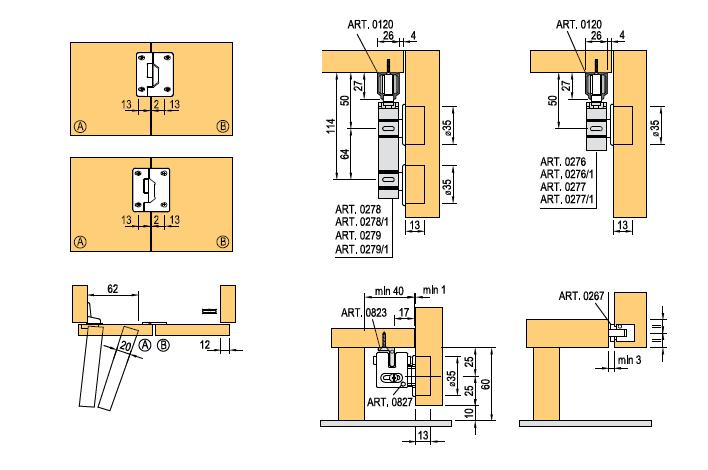 Sada kování pro dvoje skládací dveře se spodním vedením. Maximální rozměr jednoho křídla - 300 x 2000 mm. Pravolevá verze.