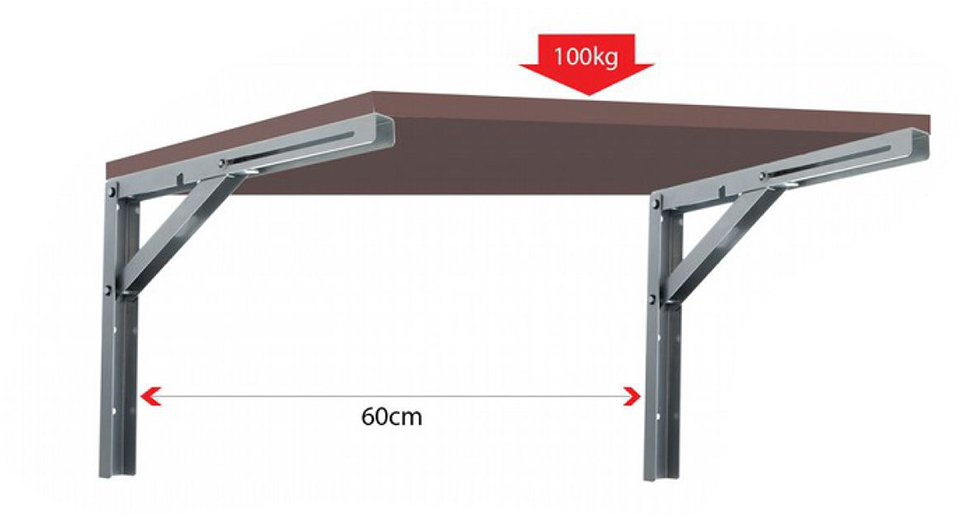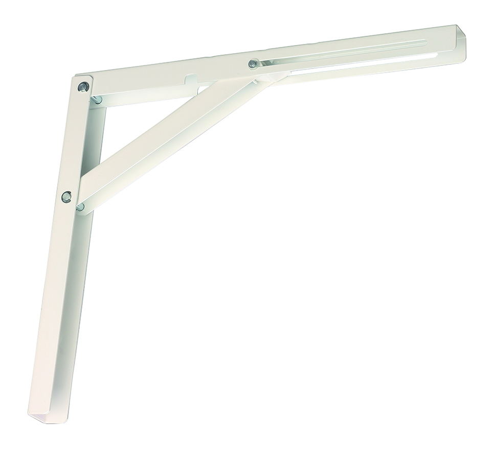 Sklopná konzole o délce ramena 30 cm v bílé barvě. Nosnost 100 kg/pár.