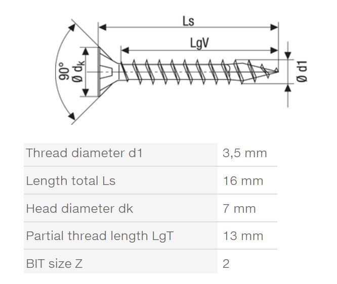 SPAX vrut 3,5x16mm zápustná hlava PZ W 4C MH