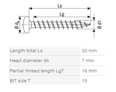 SPAX vrut 3,5x20 půlkulatá hlava TXS,W,4C,