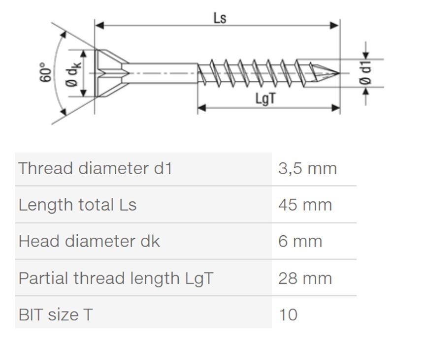 SPAX vrut 3,5x45 podlahový zápustná hlava TXS,W,4C MH