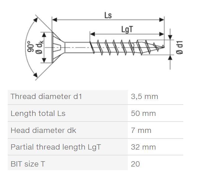 SPAX vrut 3,5x50/32mm zápustná hlava TXS,W,4C MH částečný závit