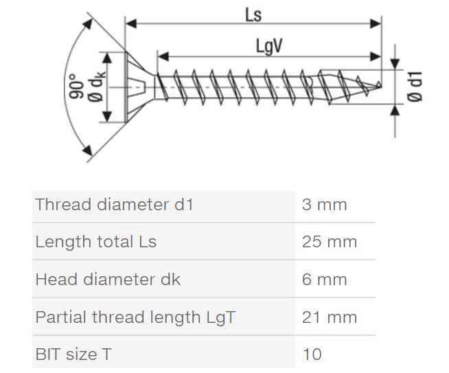 SPAX vrut 3x25mm zápustná hlava TXS W 4C MH