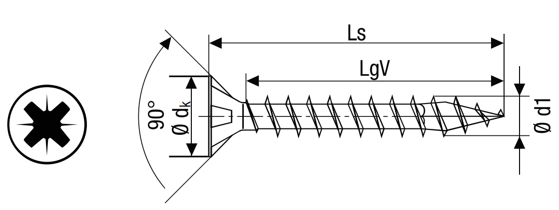 | Typ drážky vrutu | S křížovou drážkou |