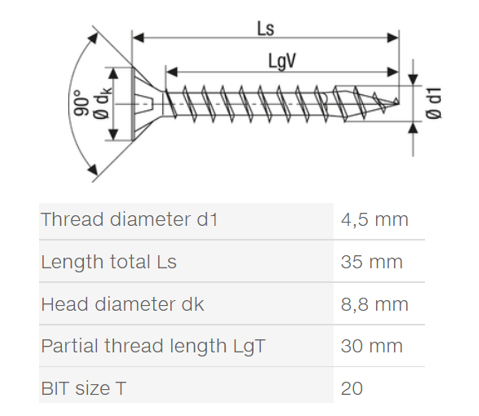 SPAX vrut 4,5x35 zápustná hlava TXS, W, 4C MH