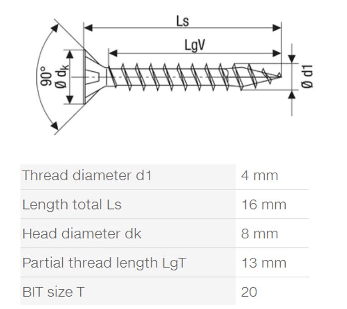 SPAX vrut 4x16mm zápustná hlava TXS W 4C MH
