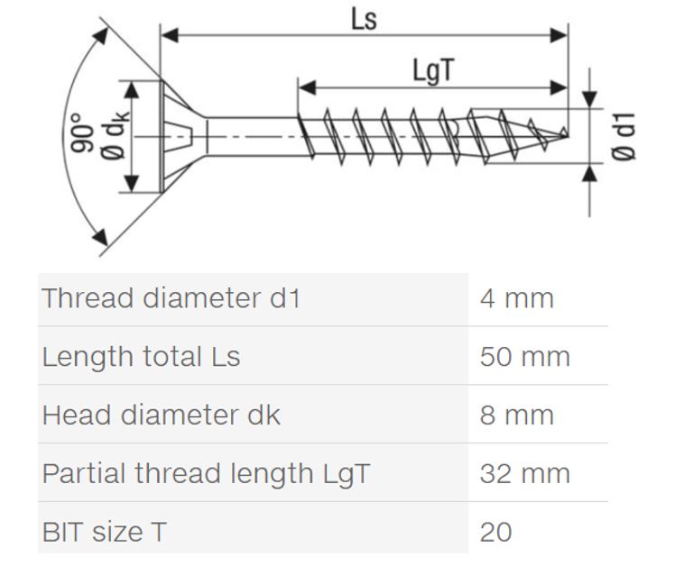 SPAX vrut 4x50/32 zápustná hlava TXS, W, 4C MH, nerez A2, částečný závit