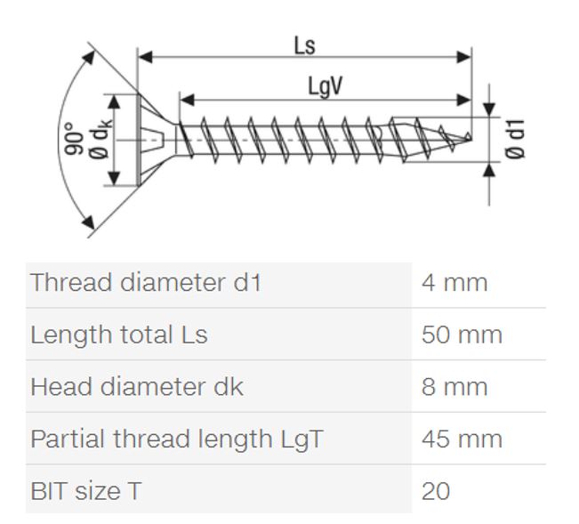 SPAX vrut 4x50mm zápustná hlava TXS W 4C MH