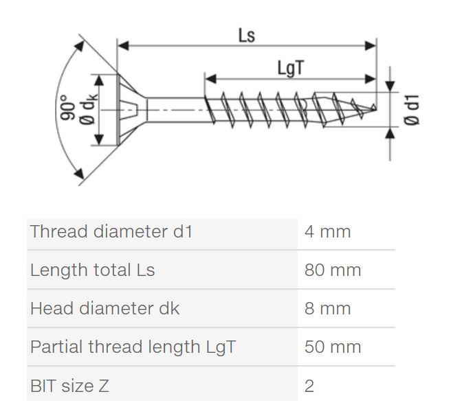SPAX vrut 4x80/50 zápustná hlava PZ,W,4C MH, částečný závit