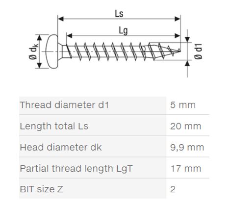 SPAX vrut 5x20mm půlkulatá hlava PZ W 4C