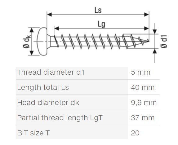SPAX vrut 5x40 půlkulatá hlava TXS,W,4C,