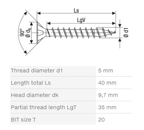 SPAX vrut 5x40 zápustná hlava TXS,W,4C MH