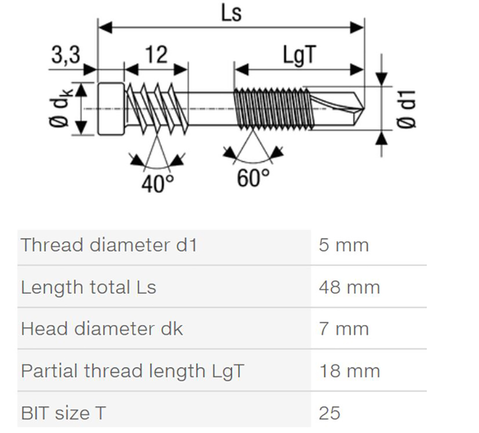 Terasový vrut do hliníkových trámů, nerezová ocel A2, cylindrická hlava, dvojitý závit, drážka T-stra plus T25, barva stříbrná