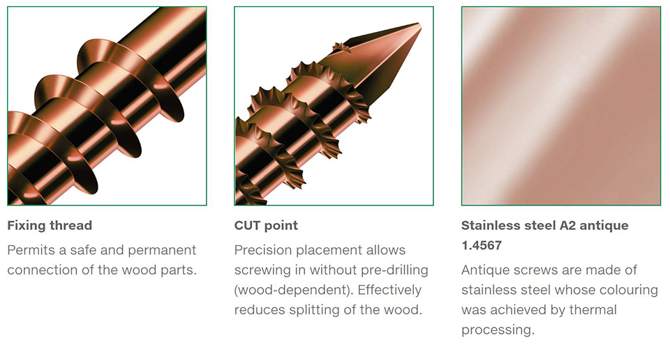 . Nyní v akci sada 381119 SPAX Box Terrase,850 ks vrutů 5x50 cylindr. TXS,A2 nerez,C,antique+příslušenství. Do vyprodání zásob.