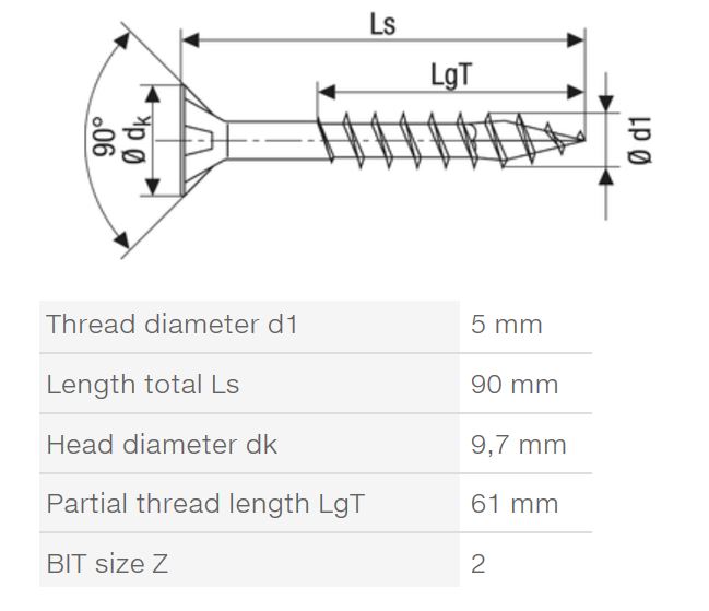 SPAX vrut 5x90/61 zápustná hlava PZ, W, 4C MH, částečný závit