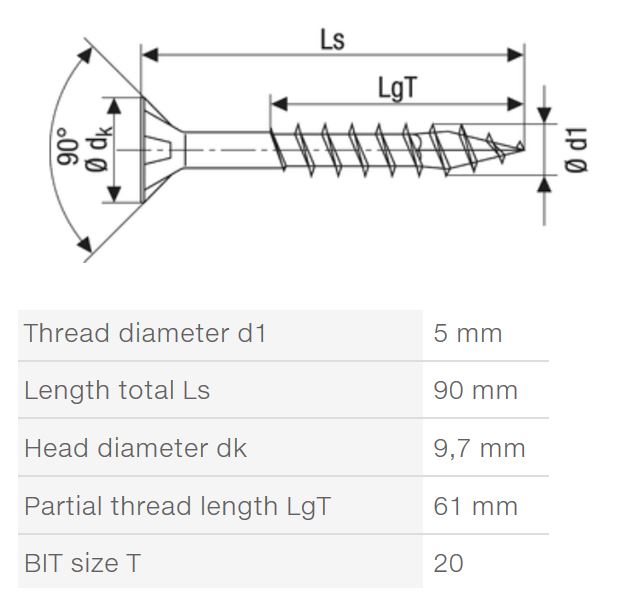 SPAX vrut 5x90/61mm zápustná hlava TXS,W,4C MH částečný závit