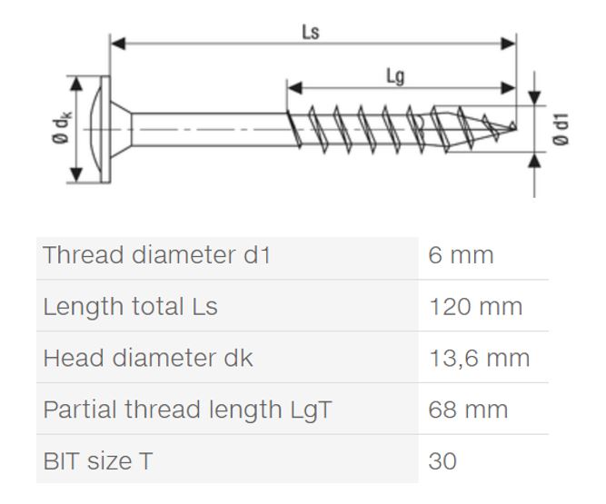 SPAX vrut 6x120/68mm talířová hlava TXS W 4C částečný závit